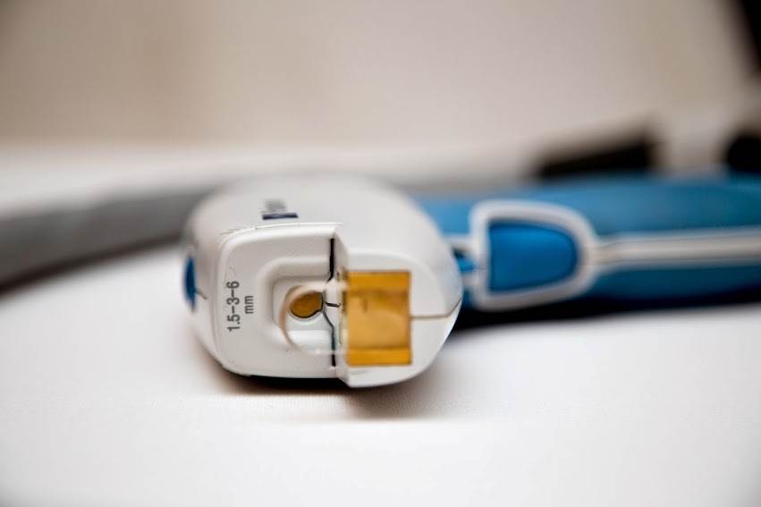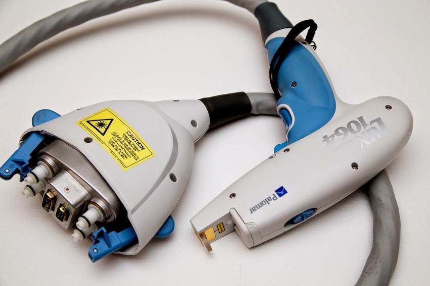 El Lux1064 Nd: YAG pieza de mano ofrece una reduccion permanente del pelo en los tipos de piel V y VI. Tambien sirve para tratar venas en las piernas.