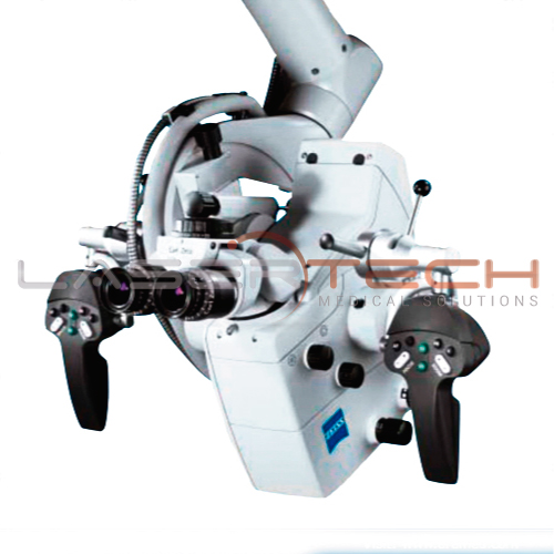- Los puños discretos se montan debajo del OPMI, permitiendo a los médicos pasar fácilmente los instrumentos dentro y fuera del campo quirúrgico.