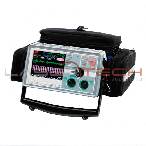 - Patient connection: 3-lead, 5-lead or 12-lead ECG cable, paddles or MFE pads, selectable by the front panel switch